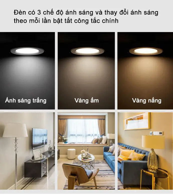 Đèn LED âm trần là loại đèn led sử dụng chip led chất lượng cao, ít tỏa nhiệt, có khả năng tiết kiệm 60% điện năng tiêu thụ so với các loại bóng đèn thông thường. Đèn LED âm trần đổi màu có 3 chế độ màu khác nhau, thích hợp cho mọi không gian