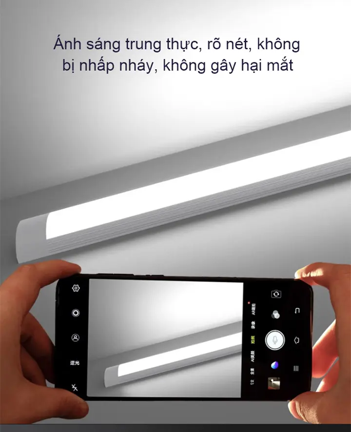 - Trên mặt đèn được ốp lớp mica trắng đục chống chói lóa, không bị nháy và đen 2 đầu. Đặc biệt không gây ra tiếng ồn khi sử dụng