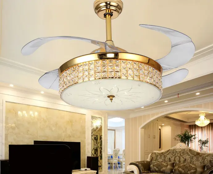 Quạt có chức năng cụp xòe. Khi bật lên quạt xòe ra như một chiếc quạt thông thường. Khi tắt quạt đi thì tự động cụp vào như 1 chiếc đèn chùm.
